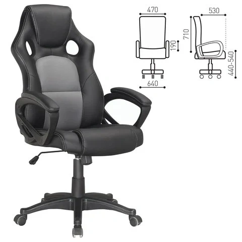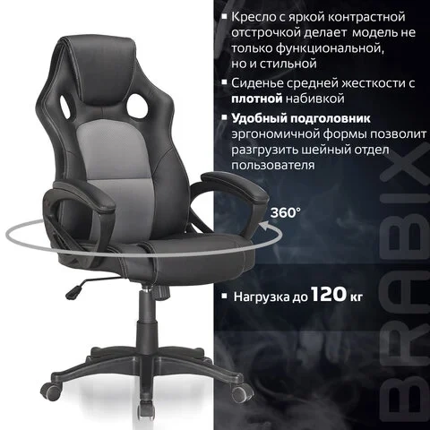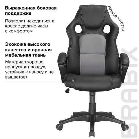 Кресло офисное Brabix Rider Plus EX-544 экокожа, черно-серая, крестовина пластик