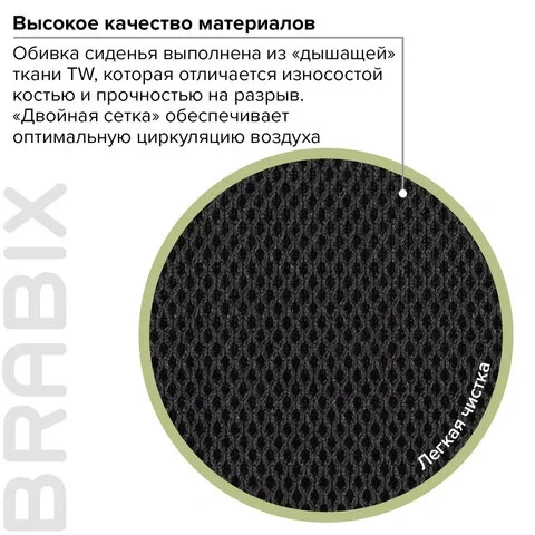 В обивке сиденья использована технологичная ткань серии TW - сложный композитный материал толщиной 5-7 мм, состоящий из нескольких слоев тканных и нетканых компонентов. Материал отлично пропускает воздух, устойчив к износу, долго сохраняет цвет, неприхотлив в уходе.