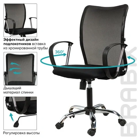 Кресло офисное Brabix Spring MG-308 ткань, черная, крестовина хром