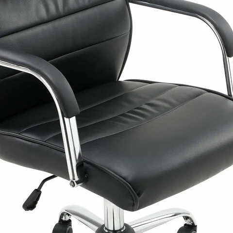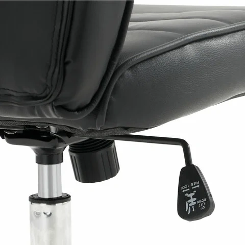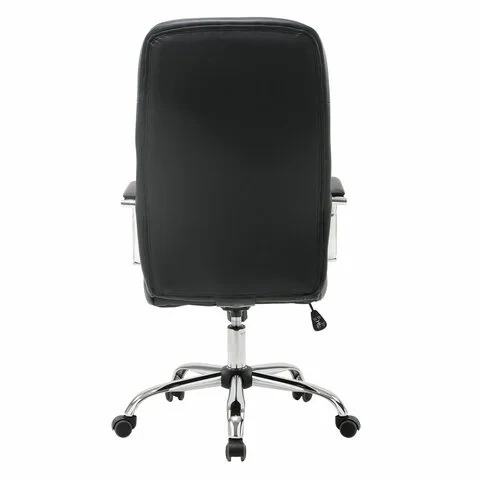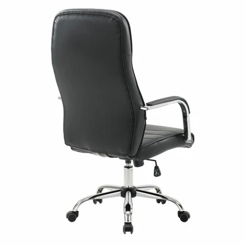 Высокая, эргономичная спинка и хромированные подлокотники с накладками из экокожи обеспечат пользователя необходимым комфортом.