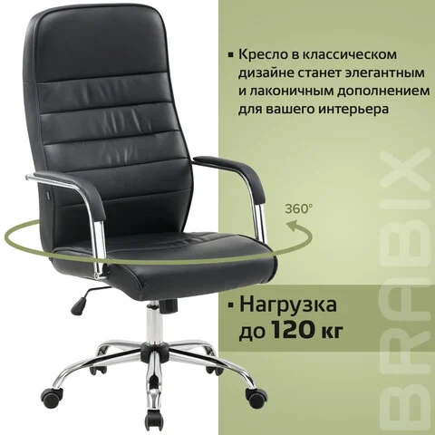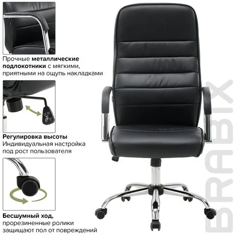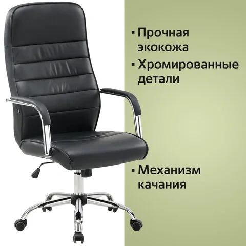 Кресло офисное Brabix Stark EX-547 экокожа, черная, крестовина хром