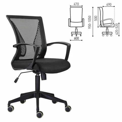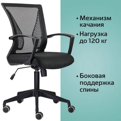 Кресло офисное Brabix Wings MG-309 ткань-сетка, черная, крестовина пластик