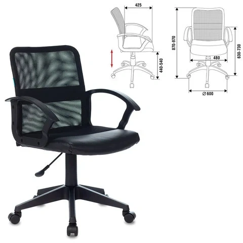 Кресло офисное Бюрократ CH-590 сетка-экокожа, черная, пластиковая крестовина