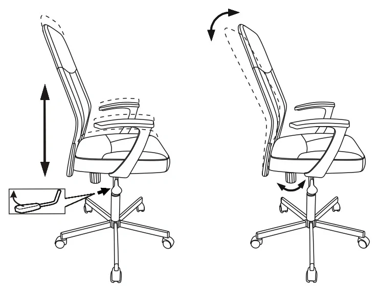 Регулировка высоты (газлифт)Пружинно-винтовой механизм качания спинкиПодлокотники пластиковыеОграничение по весу: 120 кгМеталлическая разборная крестовинаКолеса оснащены тормозом безопасности: стул не откатывается, когда вы садитесь или встаетеМатериал обивки: искусственная кожа