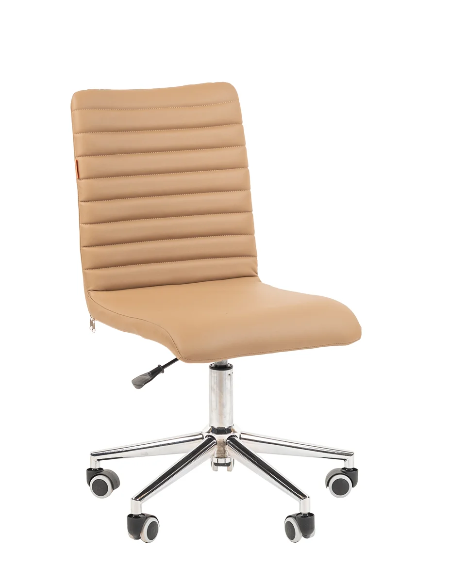 Кресло офисное Chairman 020 экокожа премиум, бежевая, крестовина хром, без подлокотников