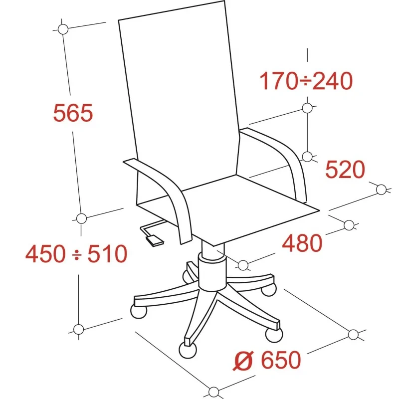 | Высота от пола до верхнего края подлокотника, мин, мм | 650 |