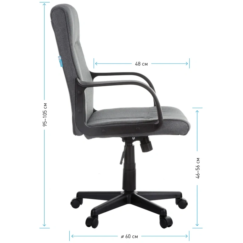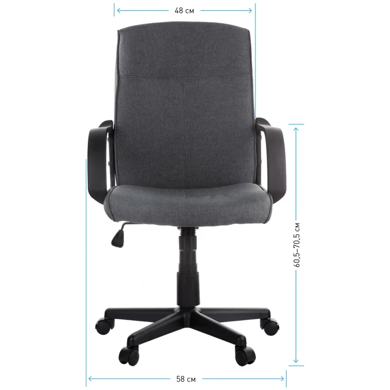 Максимальная нагрузка – 120 кг. Газпатрон 3 класса по стандарту DIN EN 16955. Каркас – немонолитный, материал набивки – вспененный полиуретан, крестовина – пластик, материал обивки – ткань серого цвета. Механизм качания с возможностью фиксации кресла в рабочем положении. Гарантийный срок – 12 месяцев.