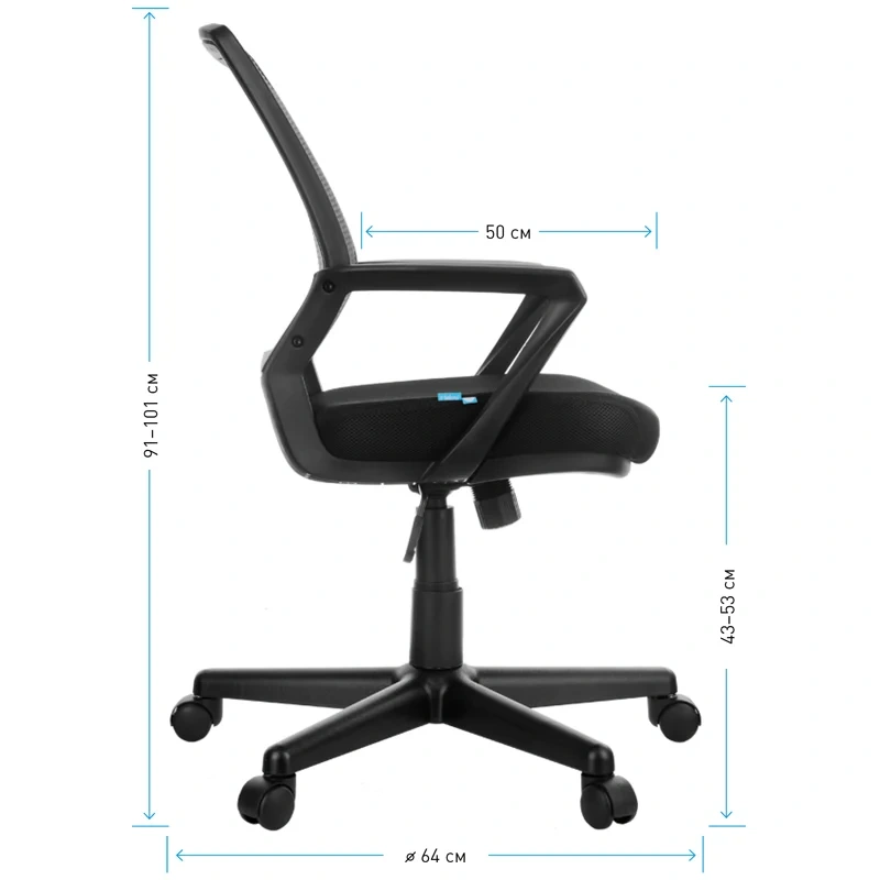 Максимальная нагрузка – 120 кг. Газпатрон 3 класса по стандарту DIN EN 16955. Каркас – немонолитный, материал набивки – вспененный полиуретан, крестовина – пластик, материал обивки – ткань-сетка на спинке черная, сиденье из ткани TW чёрного цвета. Механизм качания с возможностью фиксации кресла в рабочем положении. Гарантийный срок – 12 месяцев.