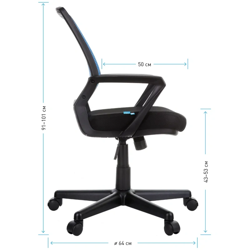 Кресло офисное Helmi Step HL-M02, ткань-сетка, синяя, ткань TW, черная, крестовина пластик