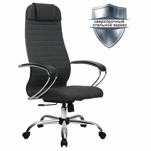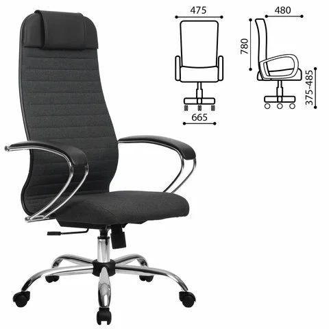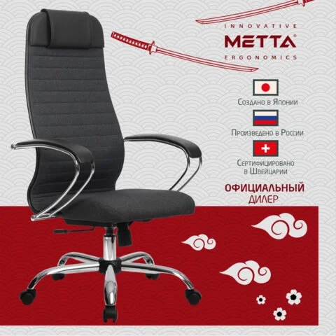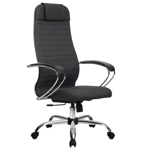 Кресло руководителя Метта, ткань-сетка, серая, крестовина хром