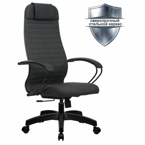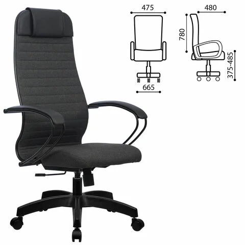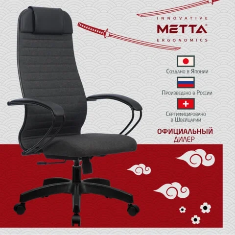 Кресло руководителя Метта, ткань-сетка, серая, крестовина пластик