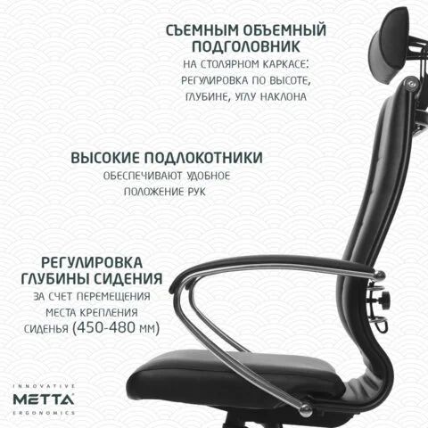 Кресло руководителя Метта К-33, экожа, черная, крестовина хром