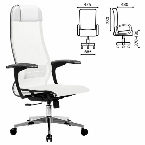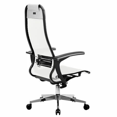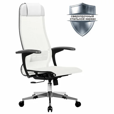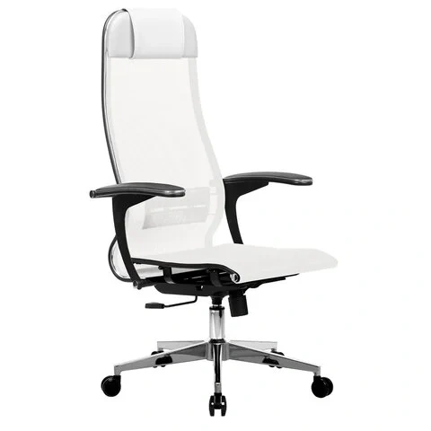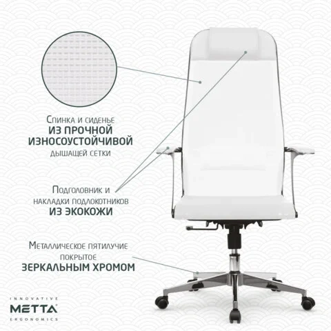 Кресло руководителя Метта, прочная сетка, белая, крестовина хром