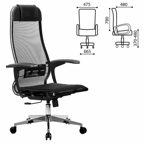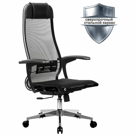 Кресло руководителя Метта, прочная сетка, черная, крестовина хром