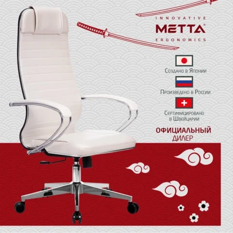 Кресло руководителя Метта К-6, экожа, белая, крестовина хром