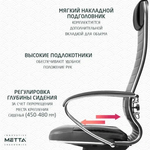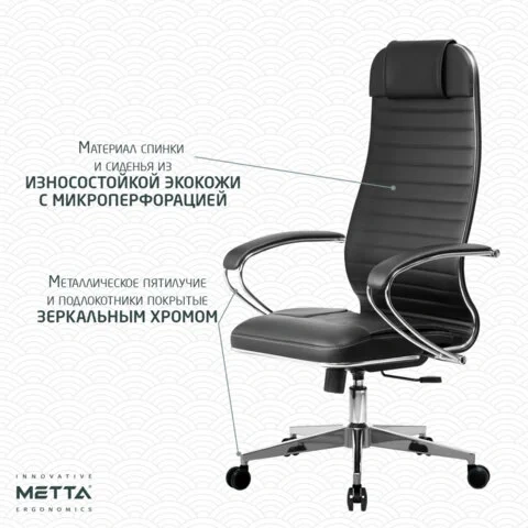 Кресло руководителя Метта К-6, экожа, черная, крестовина хром