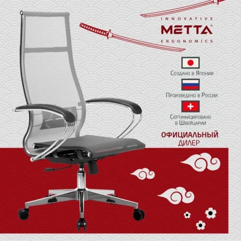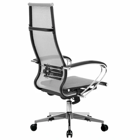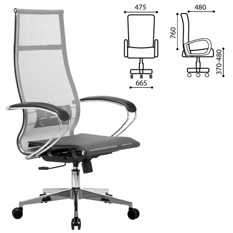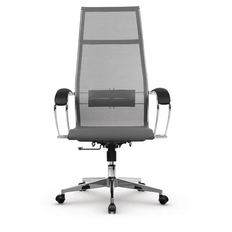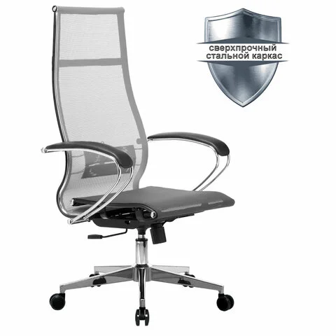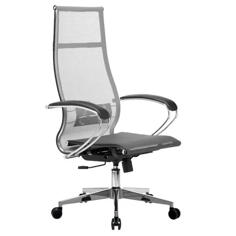 Кресло руководителя Метта, прочная сетка, серая, крестовина хром