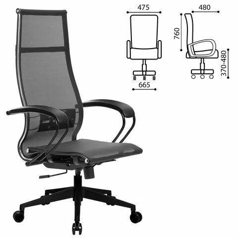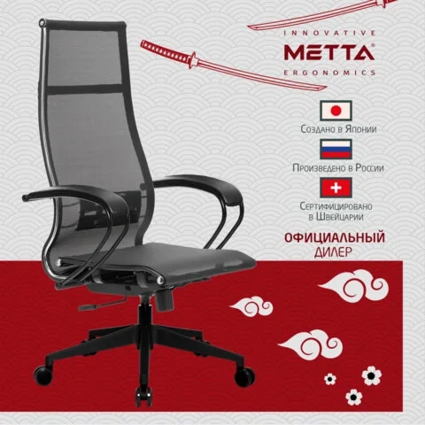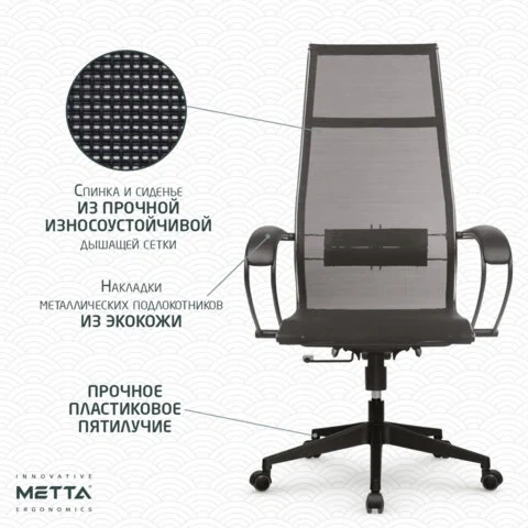 Кресло руководителя Метта, прочная сетка, черная, крестовина пластик