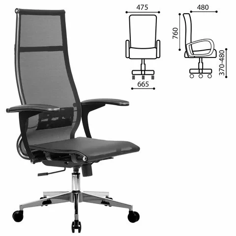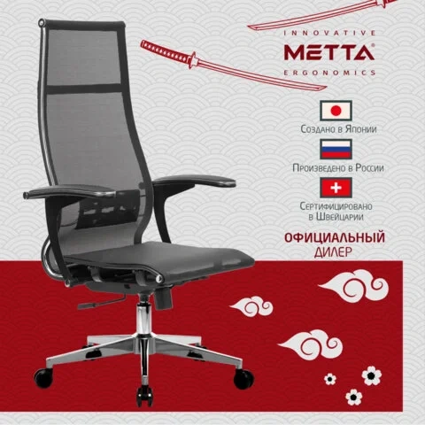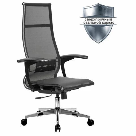 Кресло руководителя Метта, прочная сетка, черная, крестовина хром