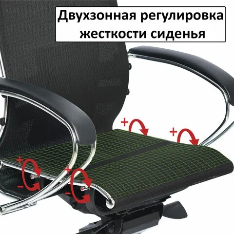 Двухзонная регулировка жесткости сиденья позволяет достичь максимального удобства, а также при необходимости настроить угол наклона сиденья за счет разного натяжения передней и задней зоны.