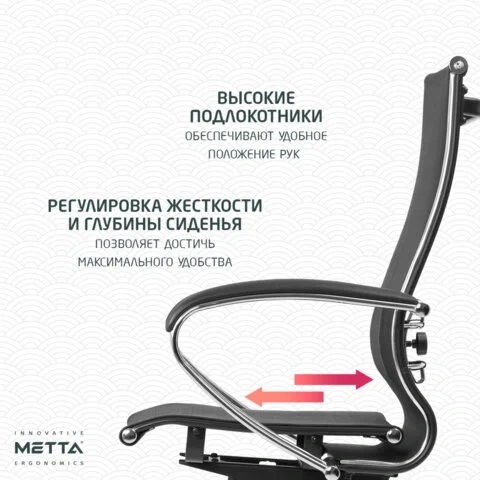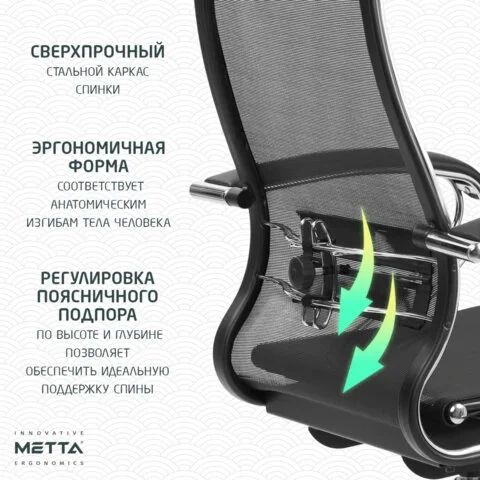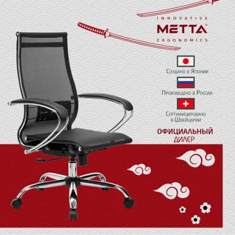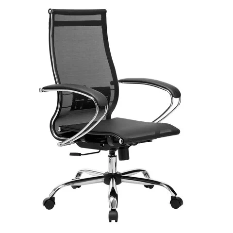 Кресло руководителя Метта, прочная сетка, черная, крестовина хром