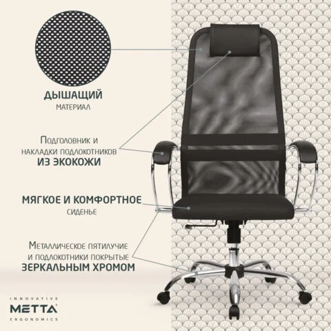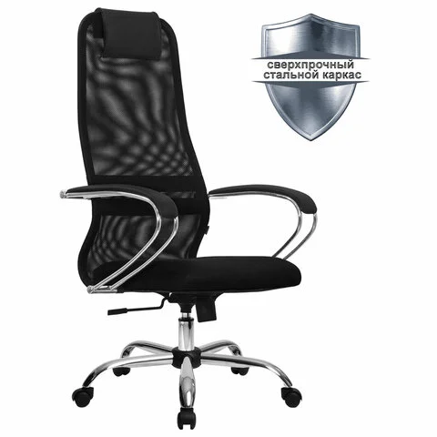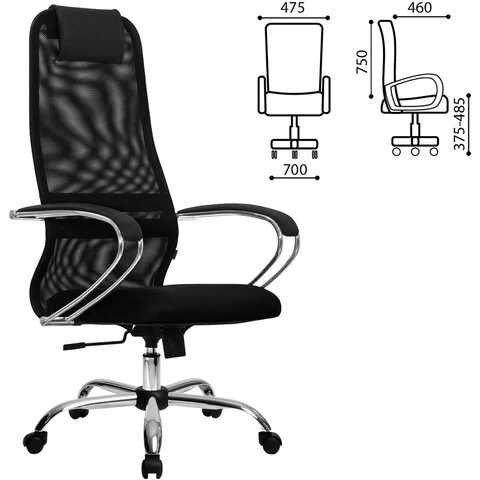Кресло офисное Метта SU-BК-8, ткань-сетка, черная, крестовина хром