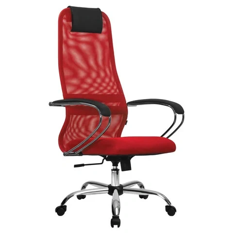 Кресло руководителя Метта, ткань-сетка, красная, крестовина хром