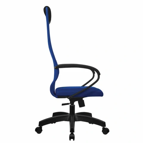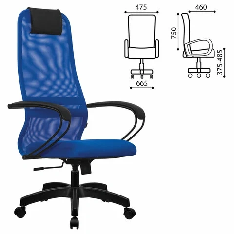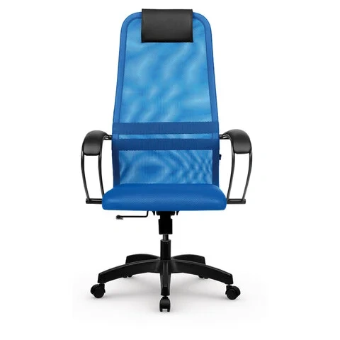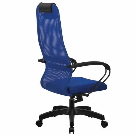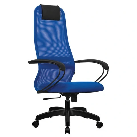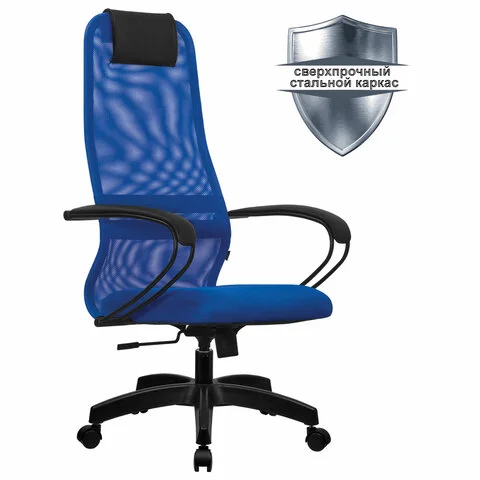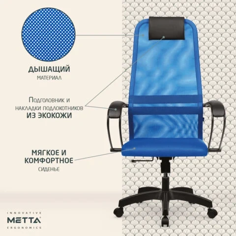 Кресло руководителя Метта, ткань-сетка, синяя, крестовина пластик