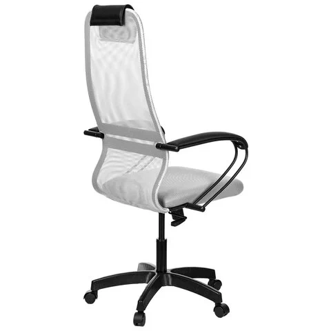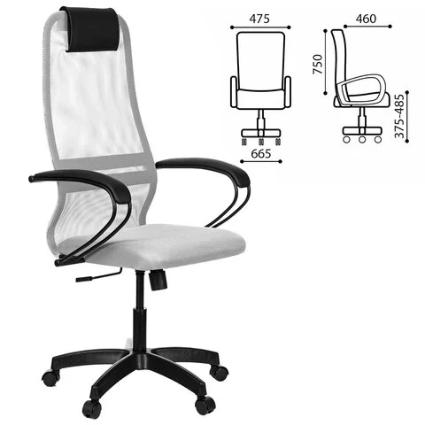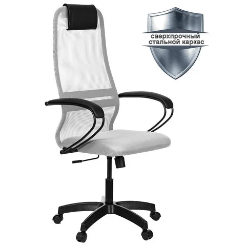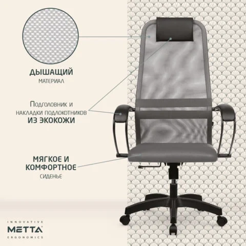 Кресло руководителя Метта, ткань-сетка, светло-серая, крестовина пластик