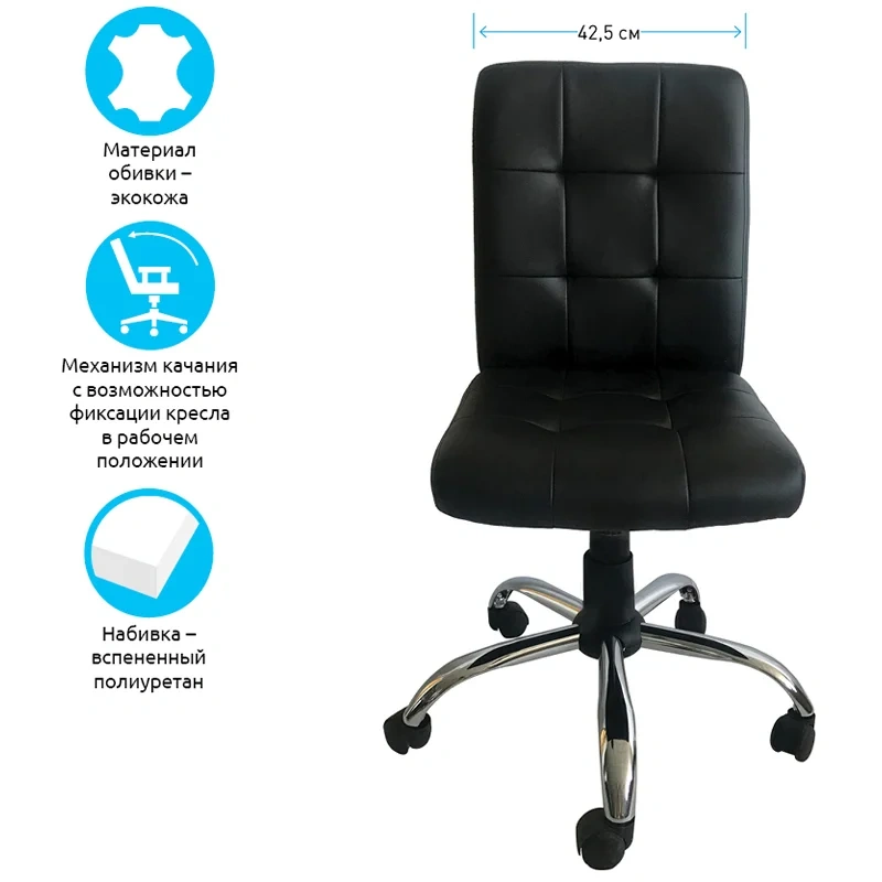 Кресло оператора Helmi HL-M08 'Squared', экокожа черная, механизм качания, без подлокотников