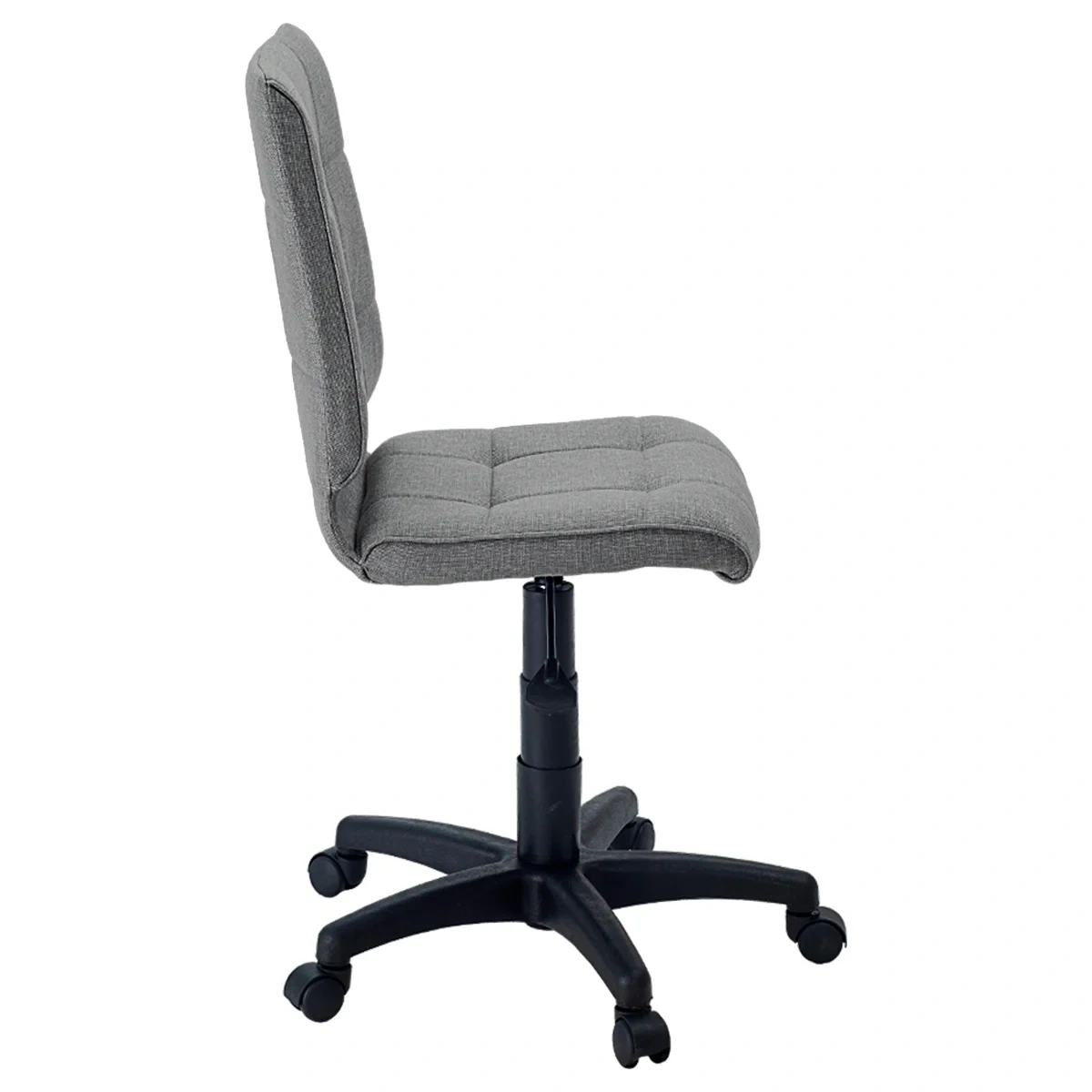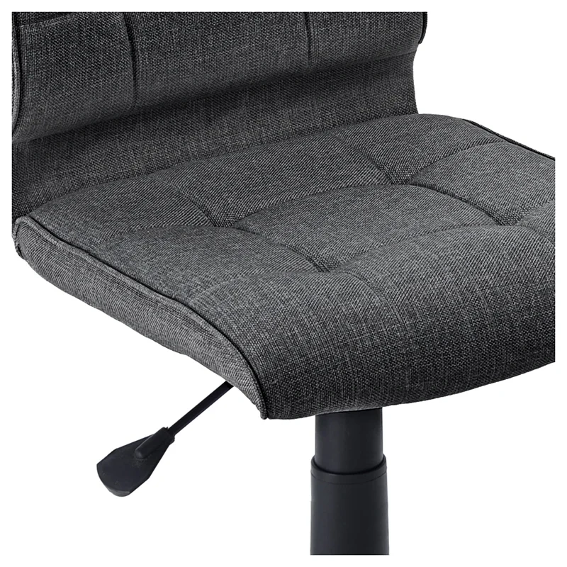 Материал обивки — ткань крафт тёмно-серого цвета. Модель оснащена механизмом с регулировкой высоты. Кресло успешно используется в офисах различного уровня, но также подойдёт и для домашнего использования.