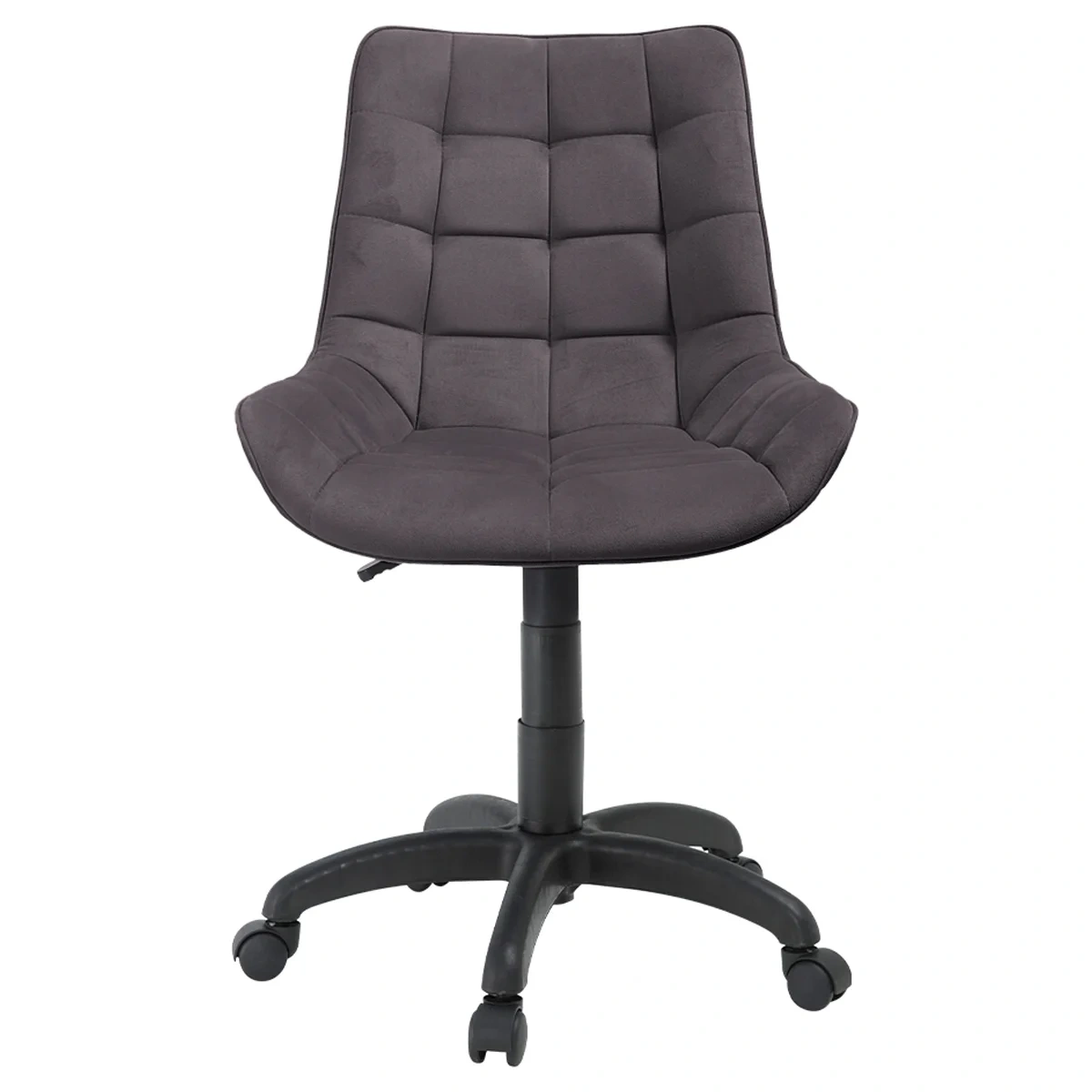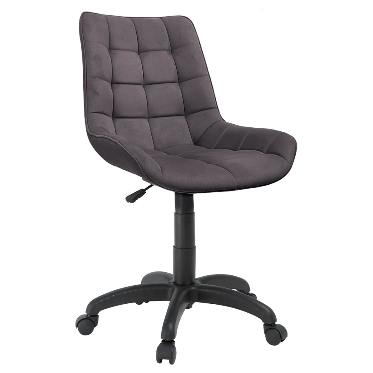 Материал обивки — ткань велюр серого цвета. Модель оснащена механизмом с регулировкой высоты. Кресло успешно используется в офисах различного уровня, но также подойдёт и для домашнего использования.