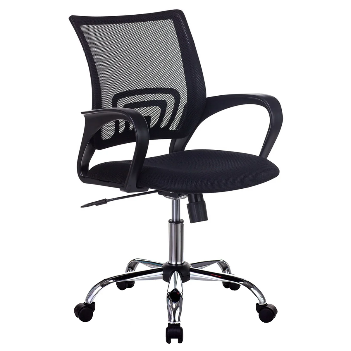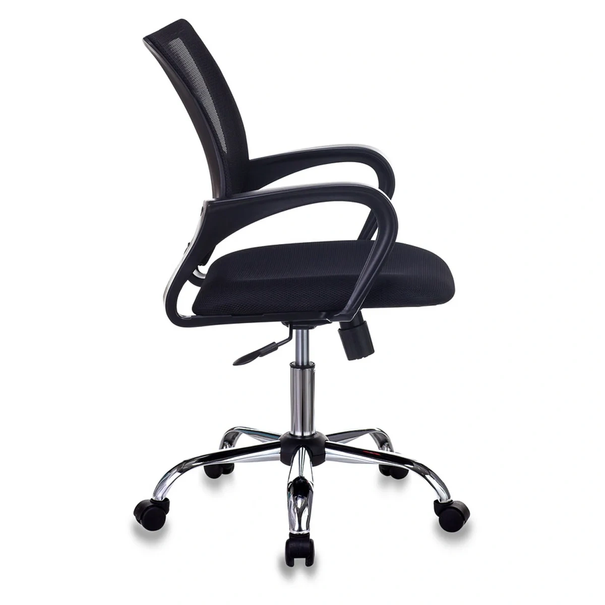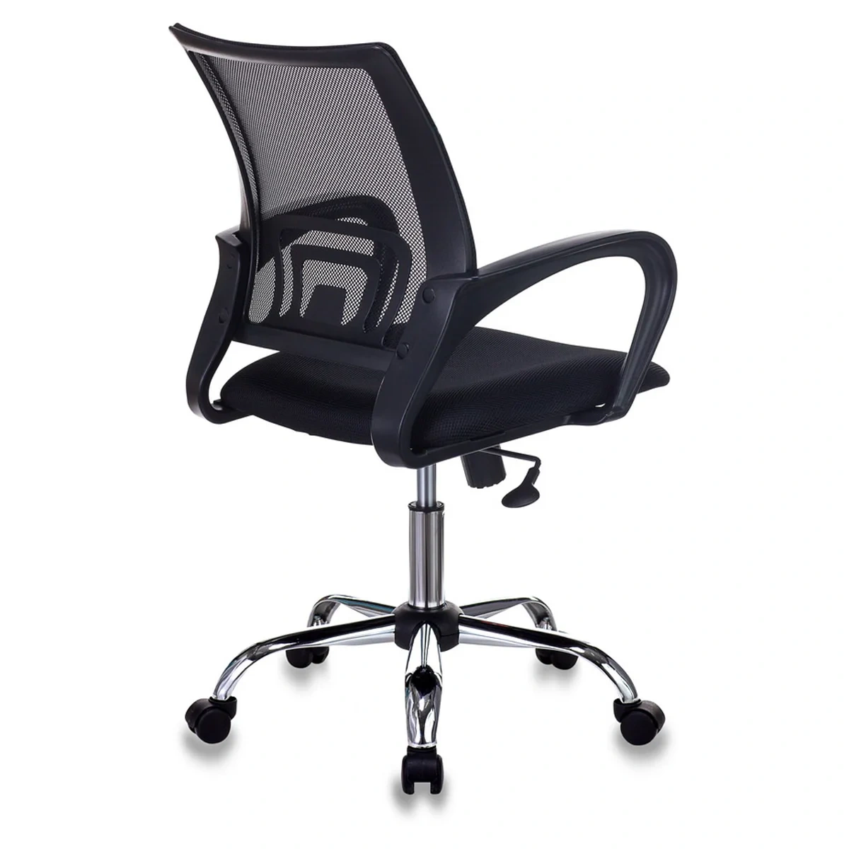 Максимальная нагрузка составляет 150 кг. Газпатрон 3 класса по стандарту Germany DIN 4550. Каркас – немонолитный, материал набивки – поролон, крестовина – металлическая хромированная, подлокотники изготовлены из пластика. Спинка из сетчатого акрила чёрного цвета подстраивается под физиологические изгибы спины. Сиденье выполнено из TW-ткани чёрного цвета. Присутствует механизм качания: механизм топ-ган, с возможностью фиксации в вертикальном положении, регулировка кресла по высоте. Гарантийный срок – 3 года. Кресло поставляется в картонной коробке в разобранном виде.