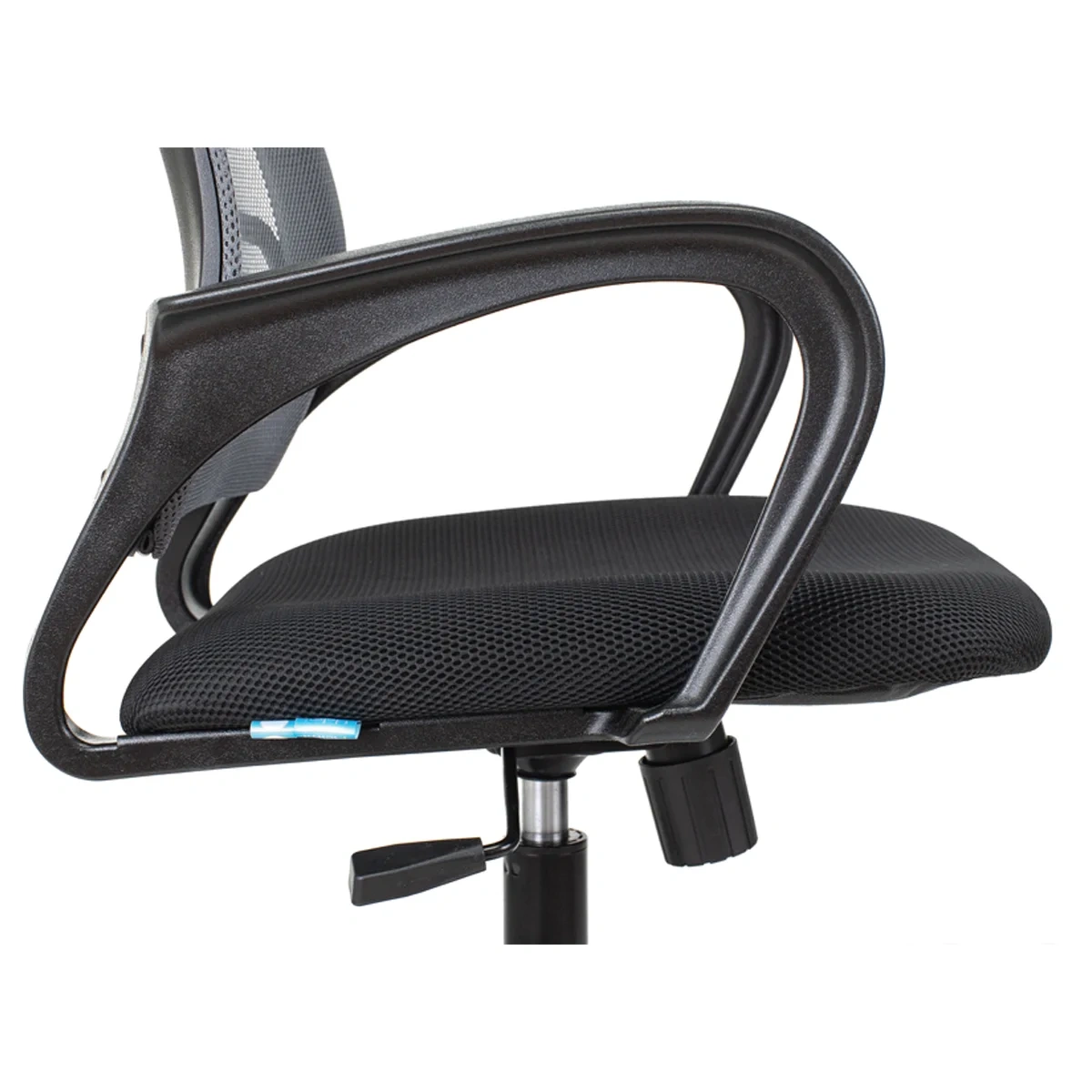 Максимальная нагрузка составляет 150 кг. Газпатрон 3 класса по стандарту Germany DIN 4550. Каркас – немонолитный, материал набивки – поролон, крестовина – пластиковая, подлокотники тоже изготовлены из пластика. Спинка из сетчатого акрила серого цвета подстраивается под физиологические изгибы спины. Сиденье выполнено из ткани чёрного цвета. Присутствует механизм регулировки кресла по высоте. Гарантийный срок – 3 года. Кресло поставляется в картонной коробке в разобранном виде.