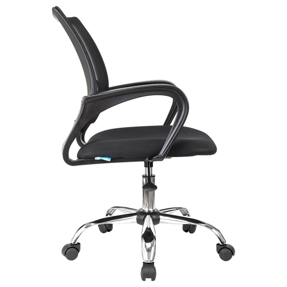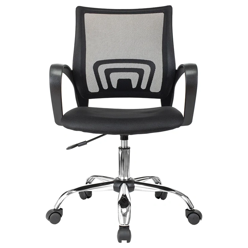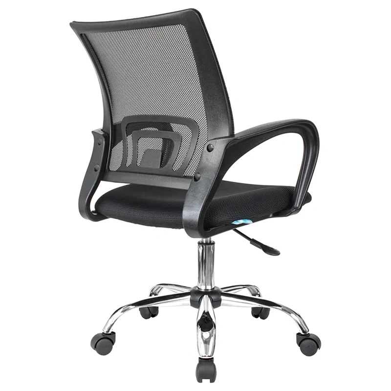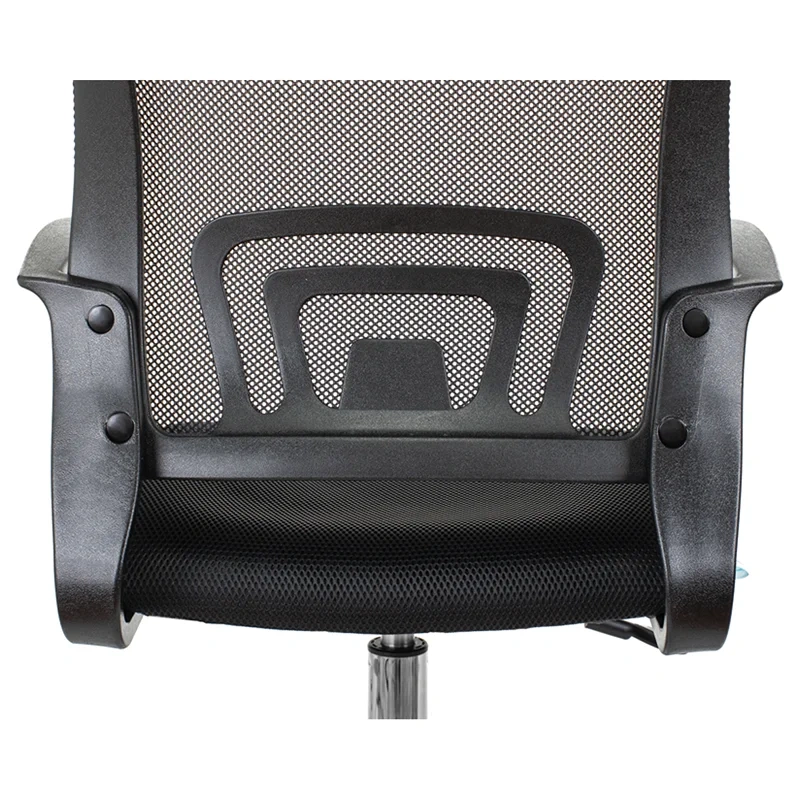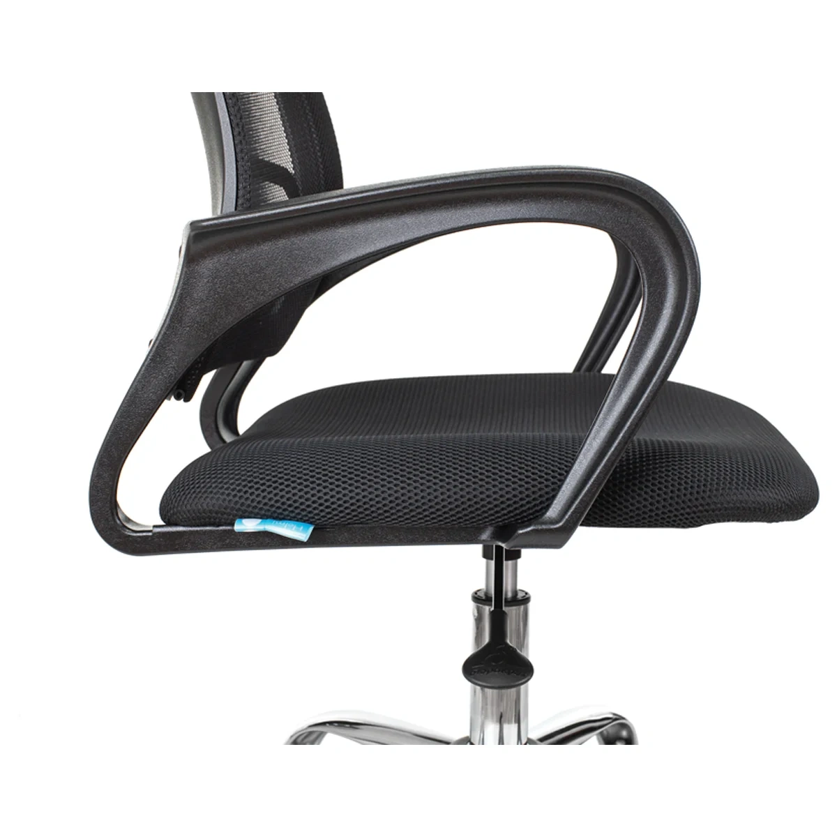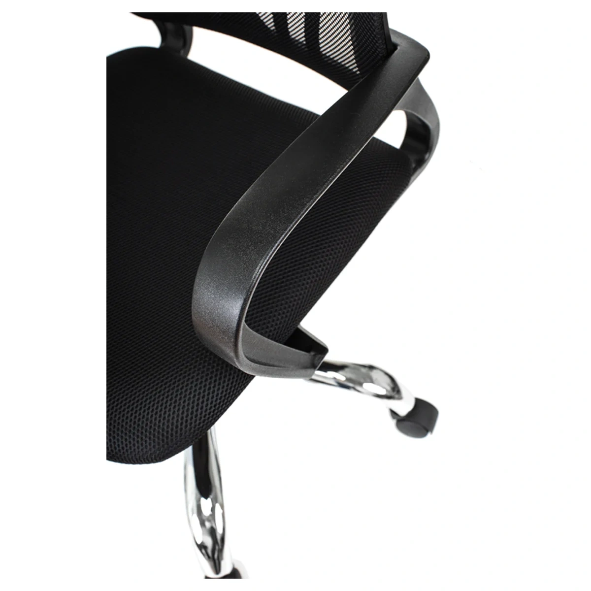 Максимальная нагрузка составляет 120 кг. Газпатрон 3 класса по стандарту Germany DIN 4550. Каркас – немонолитный, материал набивки – поролон, крестовина – хромированный металл, подлокотники изготовлены из пластика. Спинка из сетчатого акрила черного цвета подстраивается под физиологические изгибы спины. Сиденье выполнено из ткани чёрного цвета. Без механизма качания. Регулировка кресла по высоте. Гарантийный срок – 3 года. Кресло поставляется в картонной коробке в разобранном виде.