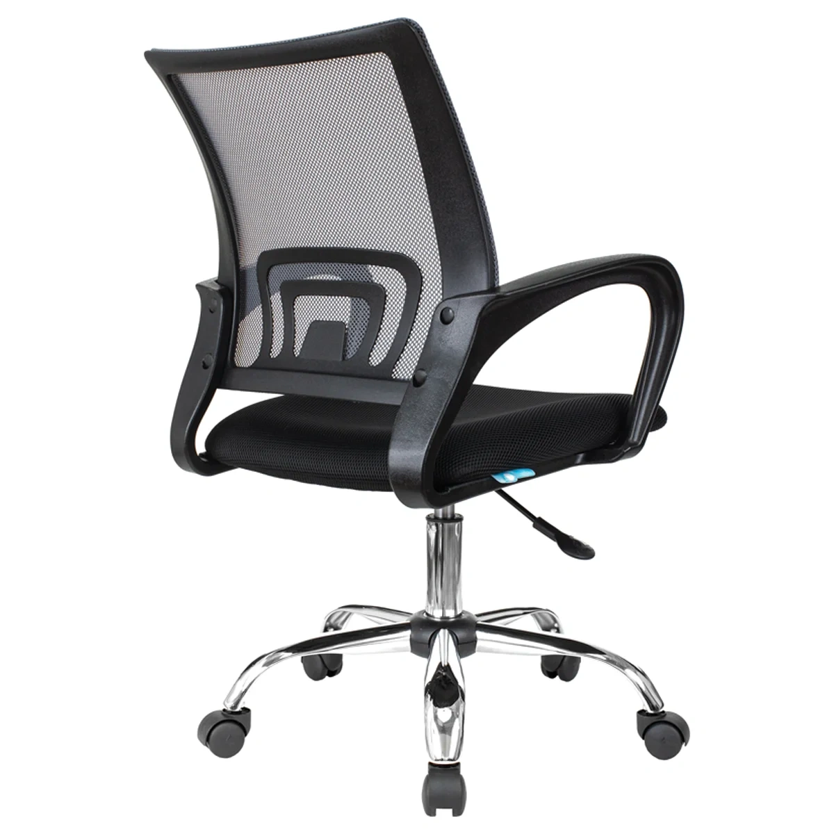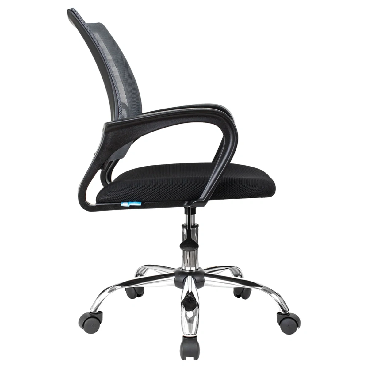 Максимальная нагрузка составляет 120 кг. Газпатрон 3 класса по стандарту Germany DIN 4550. Каркас – немонолитный, материал набивки – поролон, крестовина – хромированный металл, подлокотники изготовлены из пластика. Спинка из сетчатого акрила серого цвета подстраивается под физиологические изгибы спины. Сиденье выполнено из ткани чёрного цвета. Без механизма качания. Регулировка кресла по высоте. Гарантийный срок – 3 года. Кресло поставляется в картонной коробке в разобранном виде.