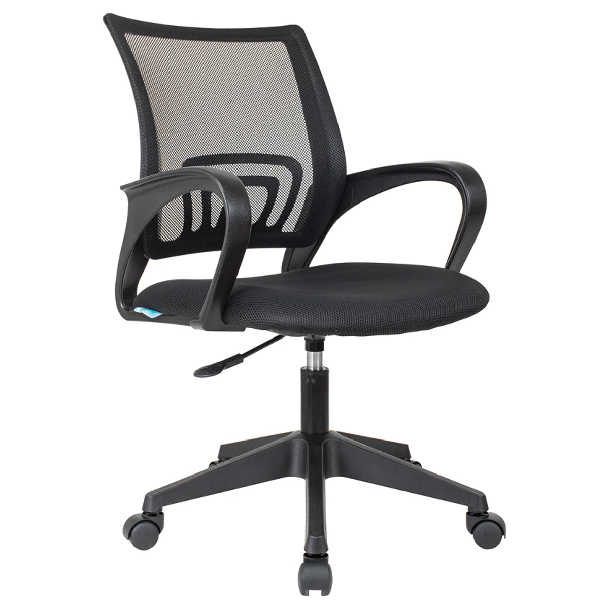Максимальная нагрузка составляет 120 кг. Газпатрон 2 класса по стандарту Germany DIN 4550. Каркас – немонолитный, материал набивки – поролон, крестовина – пластиковая, подлокотники тоже изготовлены из пластика. Спинка из сетчатого акрила черного цвета подстраивается под физиологические изгибы спины. Сиденье выполнено из ткани чёрного цвета. Без механизма качания. Регулировка кресла по высоте. Гарантийный срок – 3 года. Кресло поставляется в картонной коробке в разобранном виде.