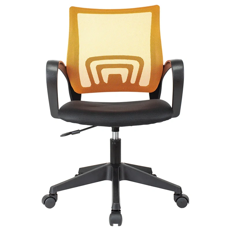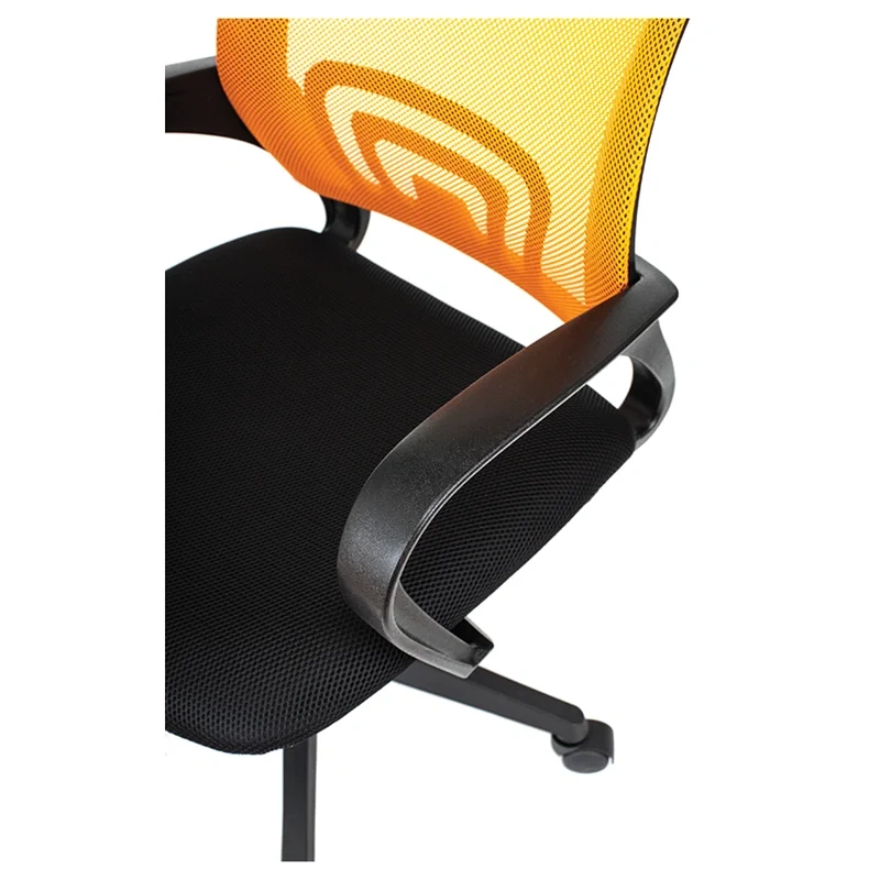 Максимальная нагрузка составляет 120 кг. Газпатрон 2 класса по стандарту Germany DIN 4550. Каркас – немонолитный, материал набивки – поролон, крестовина – пластиковая, подлокотники тоже изготовлены из пластика. Спинка из сетчатого акрила оранжевого цвета подстраивается под физиологические изгибы спины. Сиденье выполнено из ткани чёрного цвета. Без механизма качания. Регулировка кресла по высоте. Гарантийный срок – 3 года. Кресло поставляется в картонной коробке в разобранном виде.