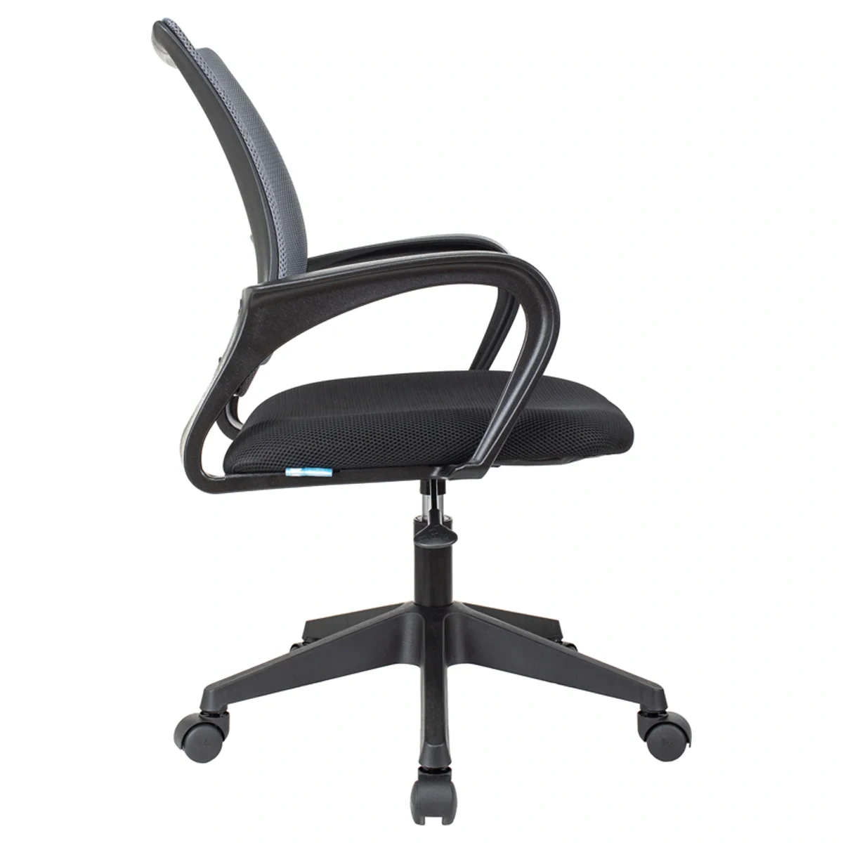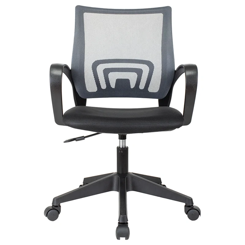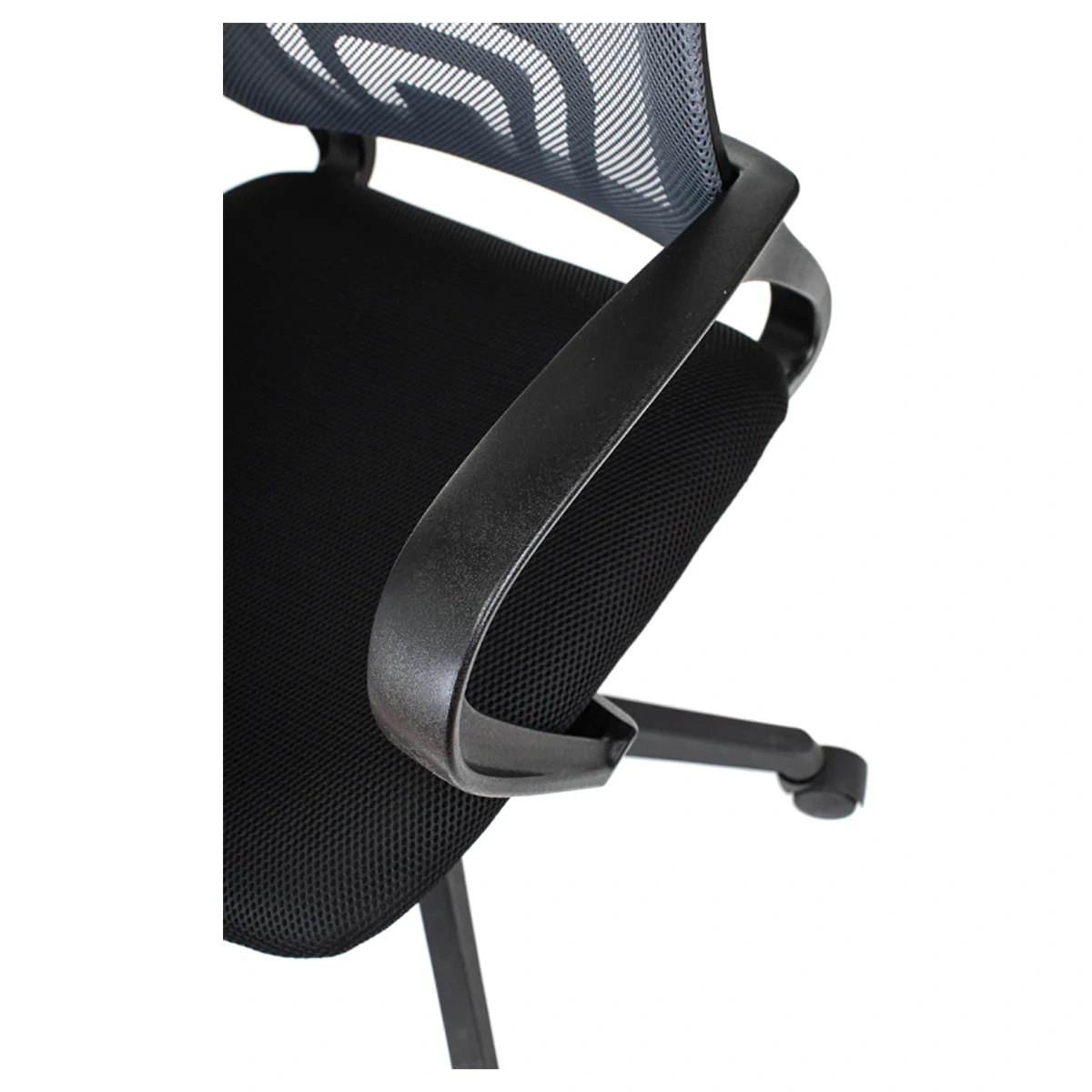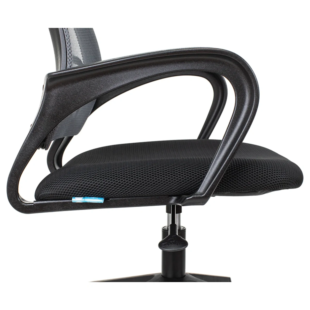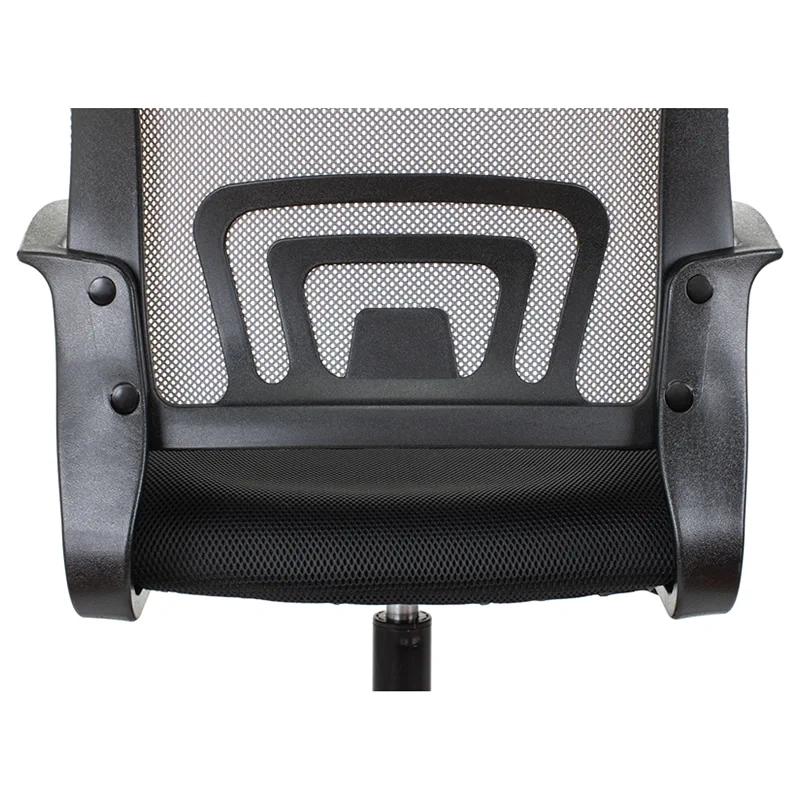 Максимальная нагрузка составляет 120 кг. Газпатрон 2 класса по стандарту Germany DIN 4550. Каркас – немонолитный, материал набивки – поролон, крестовина – пластиковая, подлокотники тоже изготовлены из пластика. Спинка из сетчатого акрила серого цвета подстраивается под физиологические изгибы спины. Сиденье выполнено из ткани чёрного цвета. Без механизма качания. Регулировка кресла по высоте. Гарантийный срок – 3 года. Кресло поставляется в картонной коробке в разобранном виде.