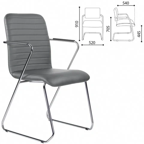 Стул посетителя Brabix Visit CF-101 экокожа, темно-серая, каркас хром