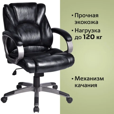 Кресло руководителя Brabix Eldorado EX-504 иск. кожа, черная, крестовина хром