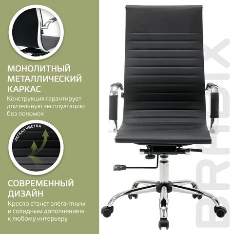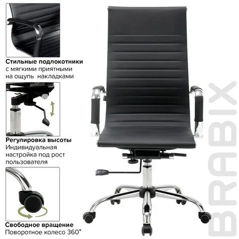 Кресло руководителя Brabix Energy EX-509 рец. кожа, черная, крестовина хром