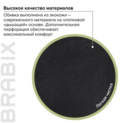 Обивка выполнена из экокожи высокого качества - современного материала на хлопковой основе. Благодаря тканой основе и пористому полиуретану экокожа отлично пропускает воздух, что положительным образом сказывается на комфорте во время эксплуатации. Материал износоустойчив и неприхотлив в уходе - кресло сохранит привлекательный внешний вид в течение длительного времени.