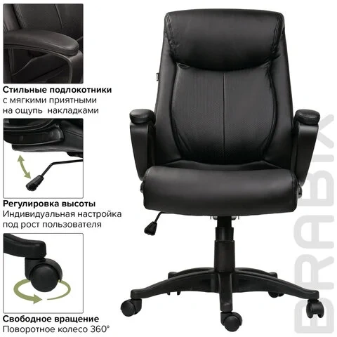Кресло руководителя Brabix Enter EX-511 иск. кожа, черная, крестовина пластик
