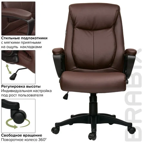 Кресло руководителя Brabix Enter EX-511 иск. кожа, коричневая, крестовина пластик