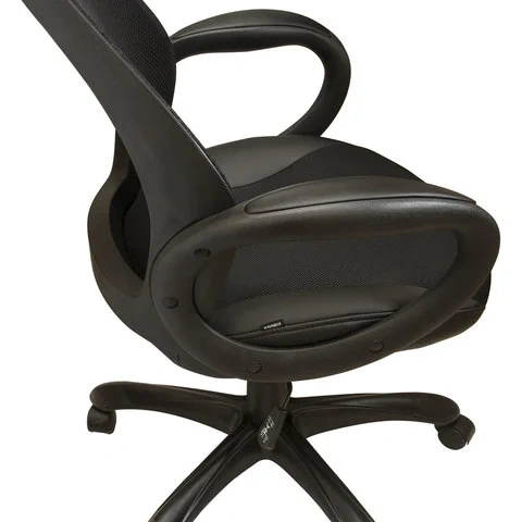 Спинка, выполненная из прочной акриловой сетки за счет натяжения и формы каркаса, создает мягкую поддержку спины, не препятствуя циркуляции воздуха.
