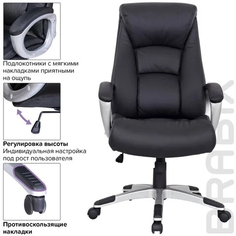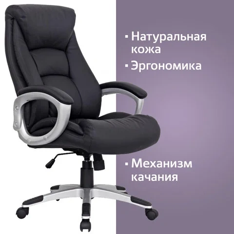 Кресло руководителя Brabix Grand EX-500 нат. кожа, черная, крестовина пластик
