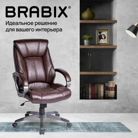 Кресло руководителя Brabix Maestro EX-506 иск. кожа, коричневая, крестовина пластик