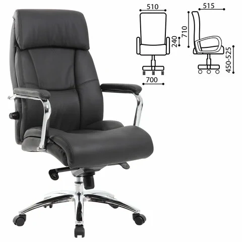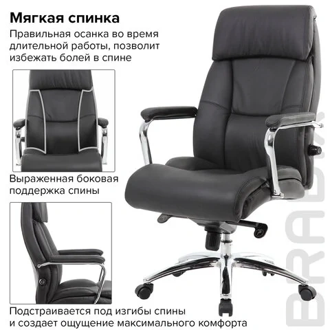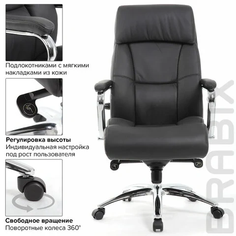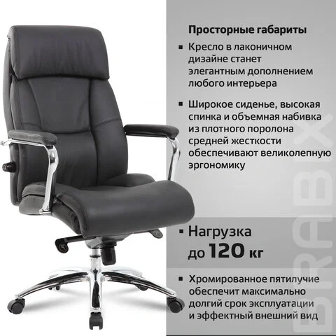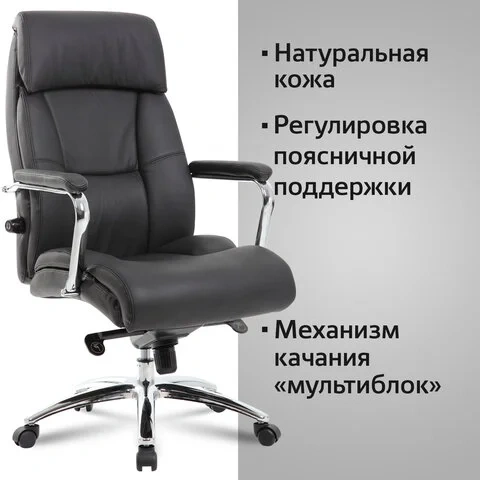 Кресло руководителя Brabix Phaeton EX-502 нат. кожа, черная, крестовина хром