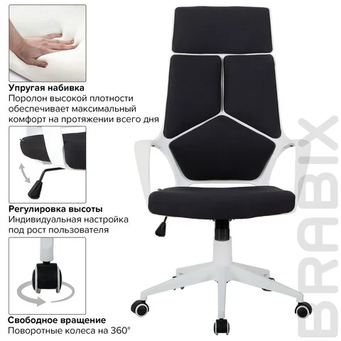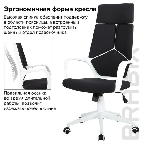 Кресло руководителя Brabix Prime EX-515 ткань, черная, крестовина белый пластик